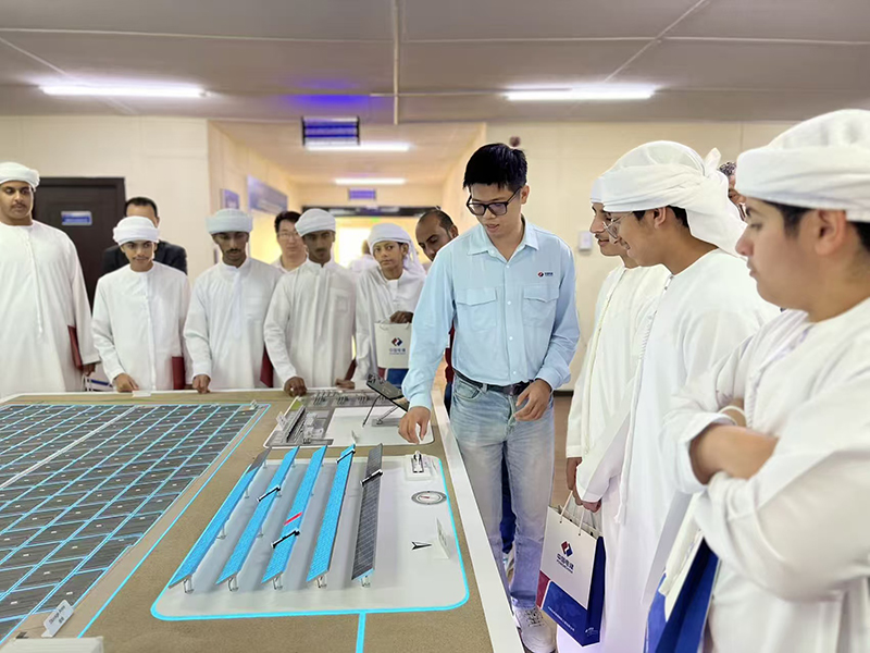 当地时间11月(yue)6日上午,中(zhong)国(guo)(guo)电建联合阿(a)联酋“百校项目(mu)(mu)”示(shi)范(fan)学(xue)校哈姆(mu)(mu)丹(dan)・本・扎(zha)耶德(de)学(xue)校(以下(xia)(xia)简称(cheng)“哈姆(mu)(mu)丹(dan)学(xue)校”),在阿(a)布扎(zha)比(bi)PV3阿(a)吉班1.5吉瓦(wa)光(guang)(guang)伏(fu)项目(mu)(mu)(以下(xia)(xia)简称(cheng)“PV3项目(mu)(mu)”)现(xian)场(chang)举(ju)办“光(guang)(guang)伏(fu)为桥(qiao),共(gong)探绿色未来(lai)”跨文化实践(jian)之旅开放日活动。师生们通(tong)过(guo)沉浸(jin)式(shi)参观、互动问答(da)与实景(jing)体验(yan),深(shen)度解码光(guang)(guang)伏(fu)发电的科技奥秘,亲(qin)身感受中(zhong)国(guo)(guo)电建助(zhu)力阿(a)联酋能源转型的实践(jian)成果。PV3项目(mu)(mu)业主首席(xi)执行官(guan)Joe Helou、中(zhong)国(guo)(guo)电建中(zhong)东北(bei)非区(qu)域总部副总经理李军旗出席(xi)活动并致辞。 Joe Helou热(re)烈欢迎来(lai)访师生(sheng)。他表示,作为阿布扎比(bi)清洁(jie)(jie)能(neng)(neng)源(yuan)基建的(de)(de)核(he)心项目,PV3项目承载着(zhe)当地可持续发展(zhan)的(de)(de)重要使命。中国电建此次活动搭建了理论(lun)与实践的(de)(de)桥梁,希望(wang)同(tong)学们通过(guo)现场(chang)学习,直观感受清洁(jie)(jie)能(neng)(neng)源(yuan)背后的(de)(de)科技力(li)量,激发对未来(lai)能(neng)(neng)源(yuan)领域(yu)的(de)(de)探索热(re)情。 李(li)军(jun)旗结合哈姆丹(dan)学(xue)(xue)校学(xue)(xue)生的(de)中(zhong)文学(xue)(xue)习背景,引用(yong)“有朋自远(yuan)方来,不亦(yi)乐乎”“三(san)人行,必(bi)有我师焉”等中(zhong)国经典语句,阐释跨文化(hua)交(jiao)流(liu)与(yu)学(xue)(xue)习的(de)深层意义,他以(yi)“好(hao)好(hao)学(xue)(xue)习,天天向(xiang)上”寄语青年(nian)一代,鼓励(li)同(tong)学(xue)(xue)们成为中(zhong)阿友(you)谊的(de)传承者、绿色(se)发展的(de)参与(yu)者,用(yong)知识与(yu)创(chuang)新为人类可持续(xu)未来赋能。 本次(ci)实践活动以“知(zhi)(zhi)识(shi)讲(jiang)解+互(hu)动体(ti)验+实地探(tan)访(fang)”三位一体(ti)模(mo)(mo)式展(zhan)开,内容丰富且层层递进。在(zai)光(guang)伏(fu)知(zhi)(zhi)识(shi)讲(jiang)解环(huan)(huan)节(jie),PV3项目(mu)专业(ye)(ye)团(tuan)队通过趣味视频、真实案(an)(an)例与(yu)(yu)通俗语言,系统解读光(guang)伏(fu)发电(dian)(dian)(dian)(dian)原理、太阳能(neng)(neng)板工(gong)作机制(zhi),以及(ji)沙漠(mo)地区(qu)(qu)超大型光(guang)伏(fu)电(dian)(dian)(dian)(dian)站建设的(de)(de)(de)(de)技术创新与(yu)(yu)施(shi)工(gong)挑战,让专业(ye)(ye)知(zhi)(zhi)识(shi)变得通俗易懂。互(hu)动问答环(huan)(huan)节(jie)中(zhong),学生们(men)(men)围绕“太阳能(neng)(neng)电(dian)(dian)(dian)(dian)站组成(cheng)部(bu)分(fen)”“太阳能(neng)(neng)储存(cun)技术”“沙漠(mo)光(guang)伏(fu)防(fang)尘(chen)方案(an)(an)”等核心问题(ti)踊(yong)跃提(ti)问,现(xian)场(chang)氛(fen)围热(re)烈,项目(mu)工(gong)程(cheng)师(shi)代表(biao)结合(he)(he)自身从业(ye)(ye)经历,分(fen)享(xiang)可再生能(neng)(neng)源(yuan)领域(yu)的(de)(de)(de)(de)成(cheng)长故事,进一步(bu)点(dian)燃学生们(men)(men)的(de)(de)(de)(de)科(ke)学探(tan)索热(re)情。体(ti)验环(huan)(huan)节(jie)中(zhong),师(shi)生们(men)(men)首(shou)先(xian)参观(guan)光(guang)伏(fu)沙盘体(ti)验区(qu)(qu),项目(mu)团(tuan)队借(jie)助立体(ti)模(mo)(mo)型,生动演示(shi)电(dian)(dian)(dian)(dian)站整体(ti)布局、施(shi)工(gong)流程(cheng)与(yu)(yu)智能(neng)(neng)化运(yun)维体(ti)系,直观(guan)展(zhan)现(xian)中(zhong)国(guo)电(dian)(dian)(dian)(dian)建在(zai)清(qing)洁能(neng)(neng)源(yuan)领域(yu)的(de)(de)(de)(de)技术实力(li)与(yu)(yu)管理水平;随后,师(shi)生们(men)(men)乘车进入项目(mu)现(xian)场(chang),近距离观(guan)察光(guang)伏(fu)组件的(de)(de)(de)(de)实际(ji)应用场(chang)景,感受“蓝色(se)(se)光(guang)伏(fu)海洋”在(zai)沙漠(mo)中(zhong)绽放的(de)(de)(de)(de)绿(lv)色(se)(se)能(neng)(neng)量。参与(yu)(yu)学生纷(fen)纷(fen)表(biao)示(shi),这是他们(men)(men)首(shou)次(ci)走(zou)进大型清(qing)洁能(neng)(neng)源(yuan)项目(mu),不(bu)仅(jin)收获了(le)专业(ye)(ye)知(zhi)(zhi)识(shi),更对绿(lv)色(se)(se)科(ke)技产生了(le)浓厚兴趣,活动极具实践价值。此外,中(zhong)东北非区(qu)(qu)域(yu)总部(bu)阿(a)联酋国(guo)别代表(biao)洪丽还向师(shi)生们(men)(men)介(jie)绍了(le)中(zhong)国(guo)电(dian)(dian)(dian)(dian)建在(zai)全球及(ji)阿(a)联酋的(de)(de)(de)(de)重点(dian)工(gong)程(cheng)项目(mu),全面(mian)展(zhan)示(shi)中(zhong)国(guo)企(qi)业(ye)(ye)在(zai)技术创新、基建建设与(yu)(yu)社会责任(ren)方面(mian)的(de)(de)(de)(de)综合(he)(he)实力(li),加深了(le)学生们(men)(men)对中(zhong)企(qi)的(de)(de)(de)(de)认(ren)知(zhi)(zhi)与(yu)(yu)认(ren)同。 本(ben)次(ci)活动是(shi)中(zhong)国电建(jian)(jian)在阿(a)联(lian)酋(qiu)(qiu)推进文(wen)化(hua)交(jiao)流的(de)重要实践(jian),也是(shi)“百校(xiao)项(xiang)(xiang)目”成果在教育与科学(xue)实践(jian)相(xiang)结合的(de)具体延伸。2019年,阿(a)联(lian)酋(qiu)(qiu)中(zhong)文(wen)教学(xue)“百校(xiao)项(xiang)(xiang)目”由中(zhong)国国家主(zhu)席习(xi)近平与阿(a)联(lian)酋(qiu)(qiu)总统(tong)穆罕默德(de)·本(ben)·扎耶德(de)共同启动,旨(zhi)在阿(a)联(lian)酋(qiu)(qiu)约100所公立(li)学(xue)校(xiao)开(kai)设中(zhong)文(wen)课(ke)程(cheng)(cheng),“百校(xiao)项(xiang)(xiang)目”已成为中(zhong)阿(a)教育合作(zuo)的(de)重要标(biao)志和民
