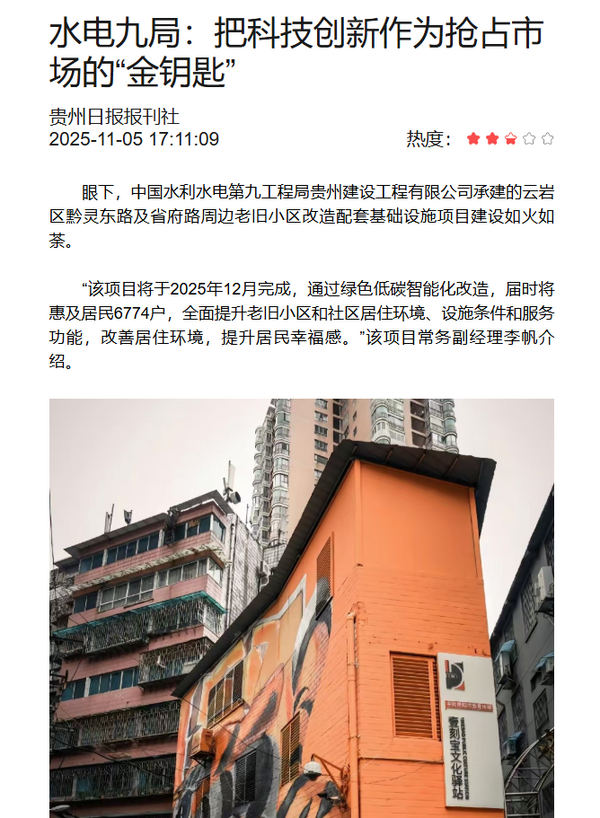 《贵州日报》水电九局:把科技创新作为抢占市场的“金钥匙”